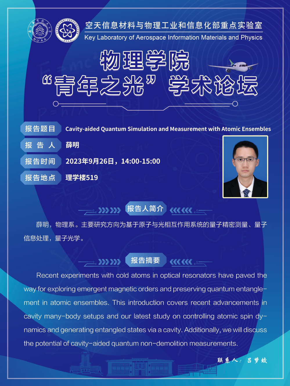 报告题目:cavity-aided quantum simulation and measurement with atomic ensembles
