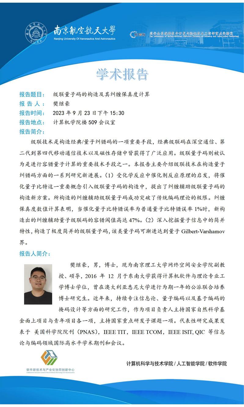 报告地点:计算机学院楼509会议室