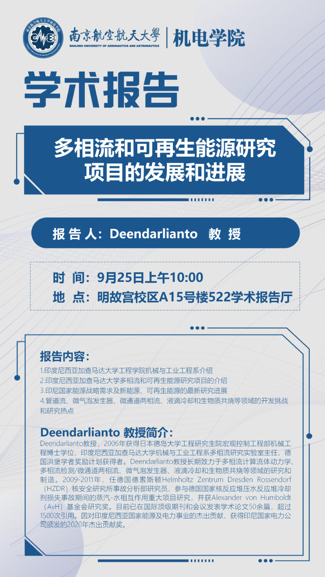报告题目:多相流和可再生能源研究项目的发展和进展
