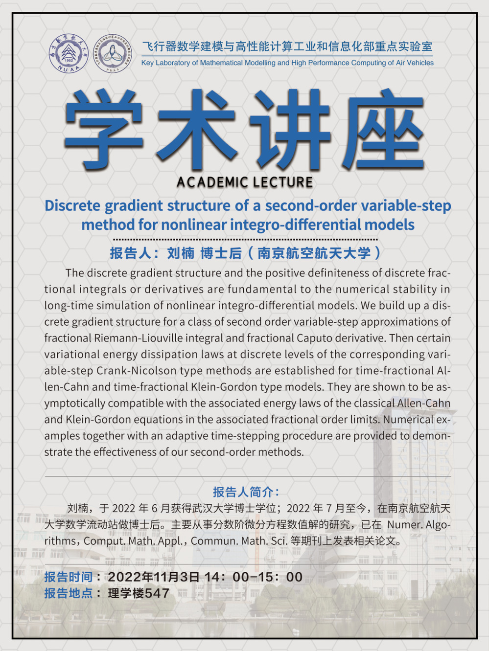 报告题目:Discrete gradient structure of a second-order variable-step method for nonlinear integro-differential models