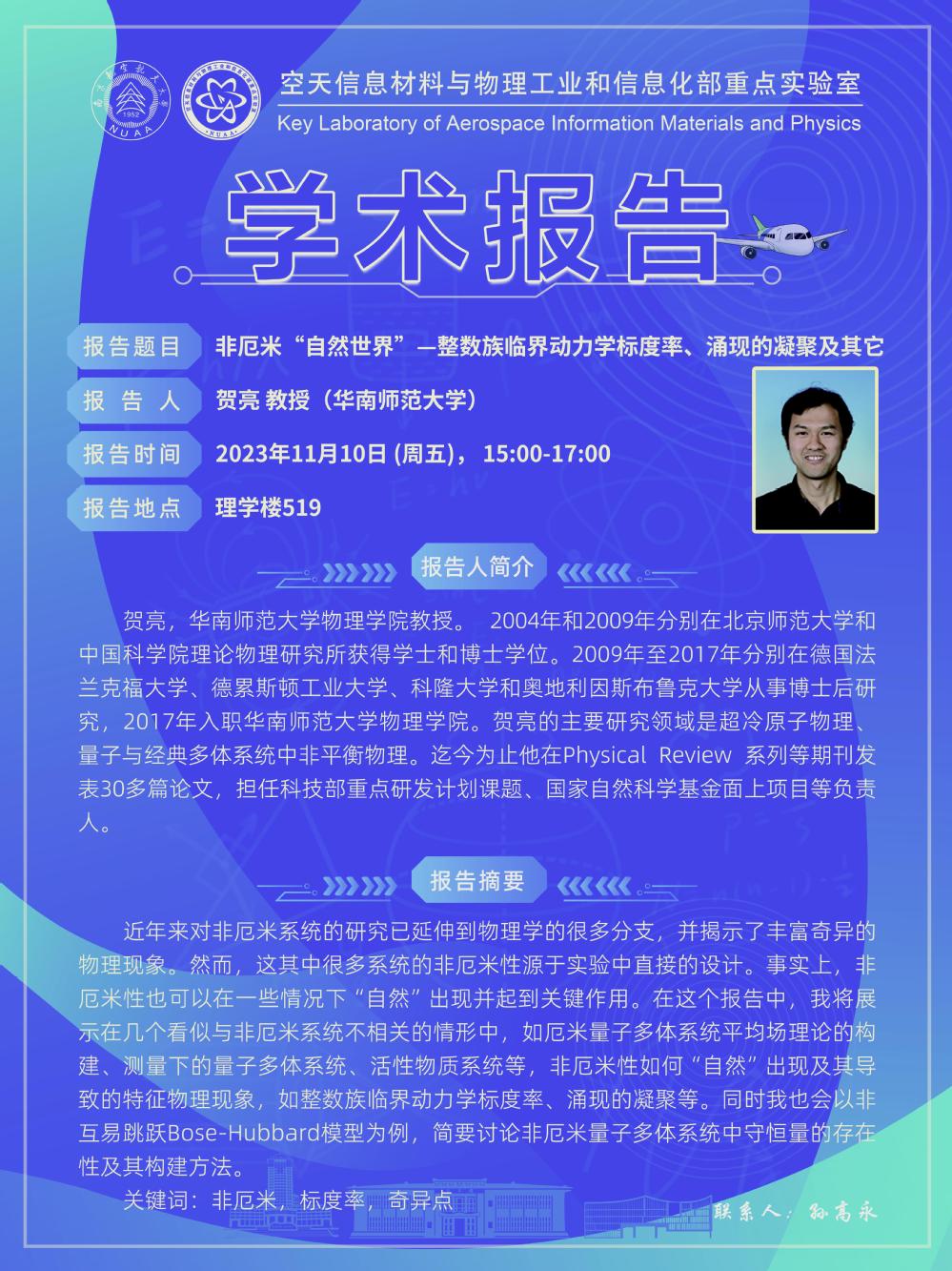 报告题目:非厄米“自然世界”-整数族临界动力学标度率、涌现的凝聚及其他