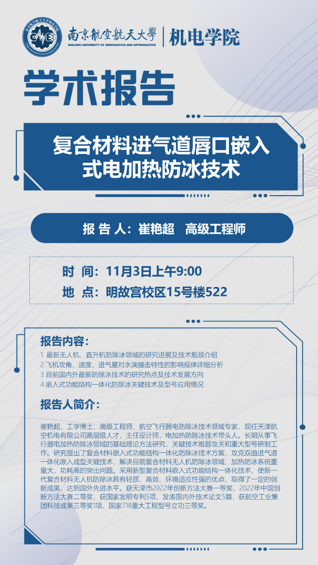 报告题目:复合材料进气道唇口嵌入式电加热防冰技术