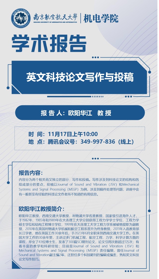 报告题目:Academic Journal Paper Writing and Publishing in International Journals