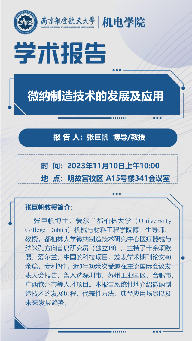 报告人:张巨帆 教授 (爱尔兰都柏林大学)