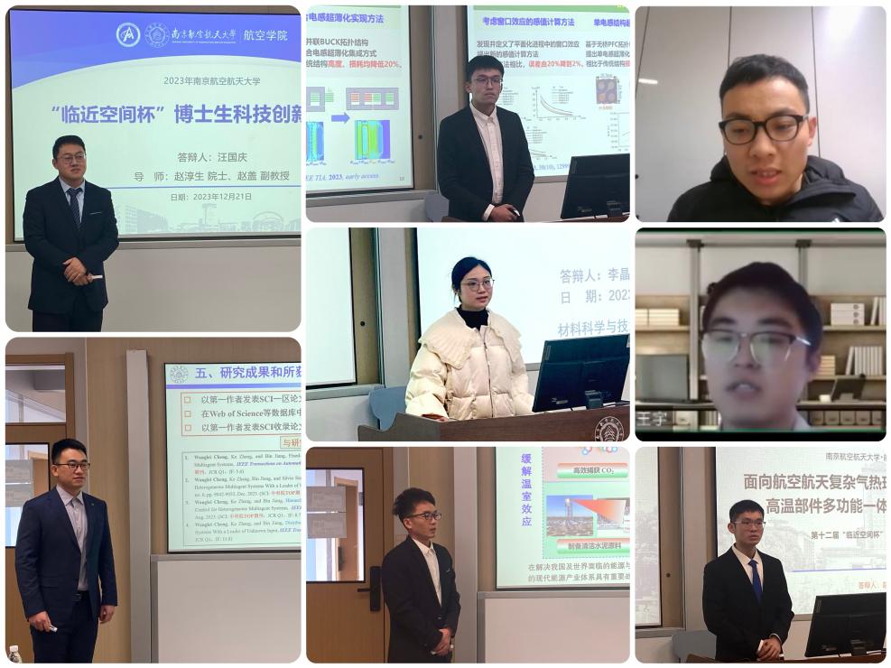 12月21日下午,我校第十二届“临近空间杯”博士生科技创新奖公开答辩在将军路校区举行。在前期学生自主申报、学院推荐、学校专家组初评的基础上,最终共有14名学生进入公开答辩评审。本次答辩由6名知名教授参与评审,研究生院副院长郑祥明主持答辩。