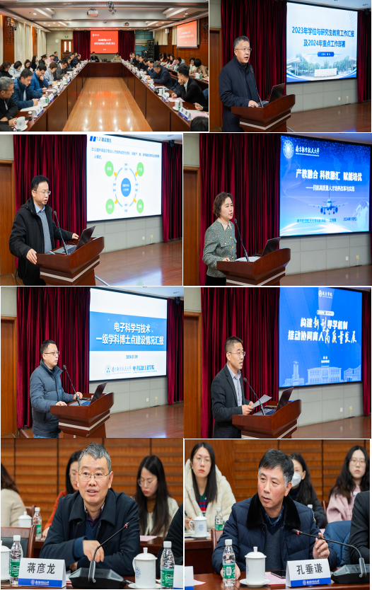 2024年1月9日上午,我校在明故宫校区综合楼11楼会议室召开2023年研究生高质量人才培养工作会,校党委书记单忠德、校长姜斌、副校长施大宁,研究生院/研工部、教务处、长空学院负责同志,各学院分管研究生教育副院长、研究生教务员参加本次会议,会议由施大宁主持。
