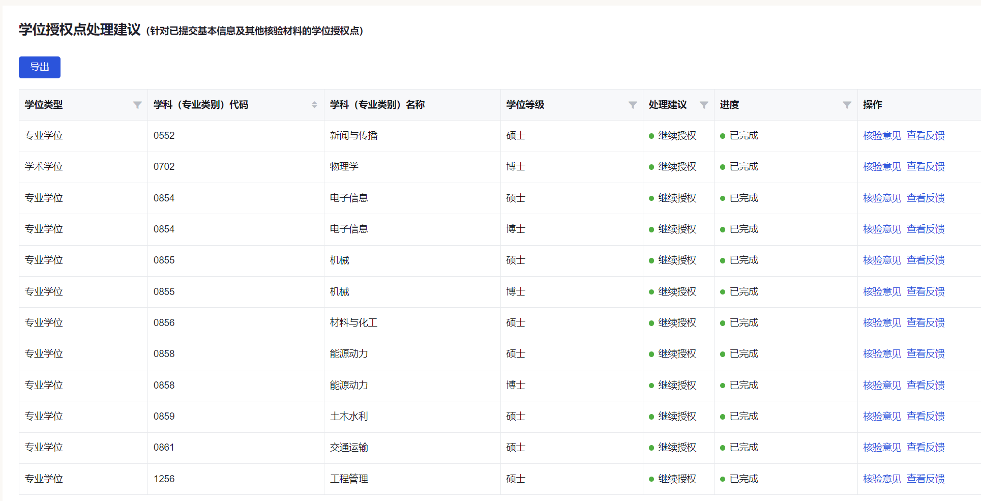 根据2023年学位授权点专项核验工作表决结果及核验意见,我校参加核验的12个学位授权点,均全票通过此次专项核验。