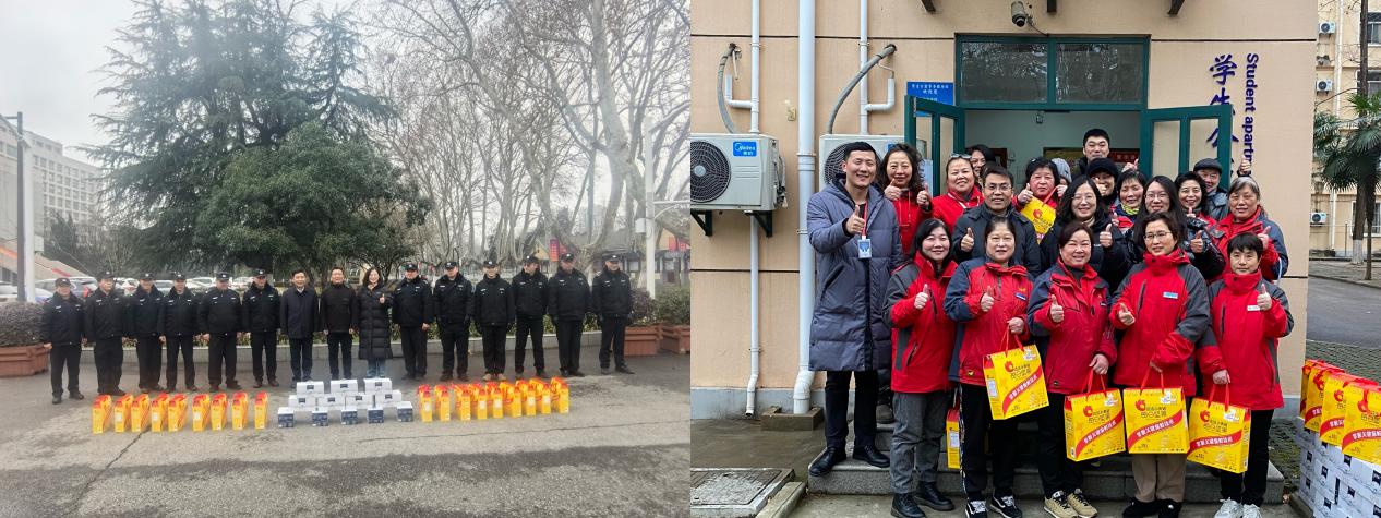 2月2日下午,在新春佳节即将来临之际,研究生院/党委研究生工作部、学生处、校团委在两校区看望慰问了寒假期间坚守在服务保障一线的校保卫队员和后勤保障人员,并向全体工作人员发放了新春慰问物资,送上节日的问候和诚挚的祝福。在明故宫校区,党委研究生工作部部长宋凯、保卫处处长徐曙峰、后勤集团党委书记王国军、党委研究生工作部部长副部长雷蕾一同参加了慰问。