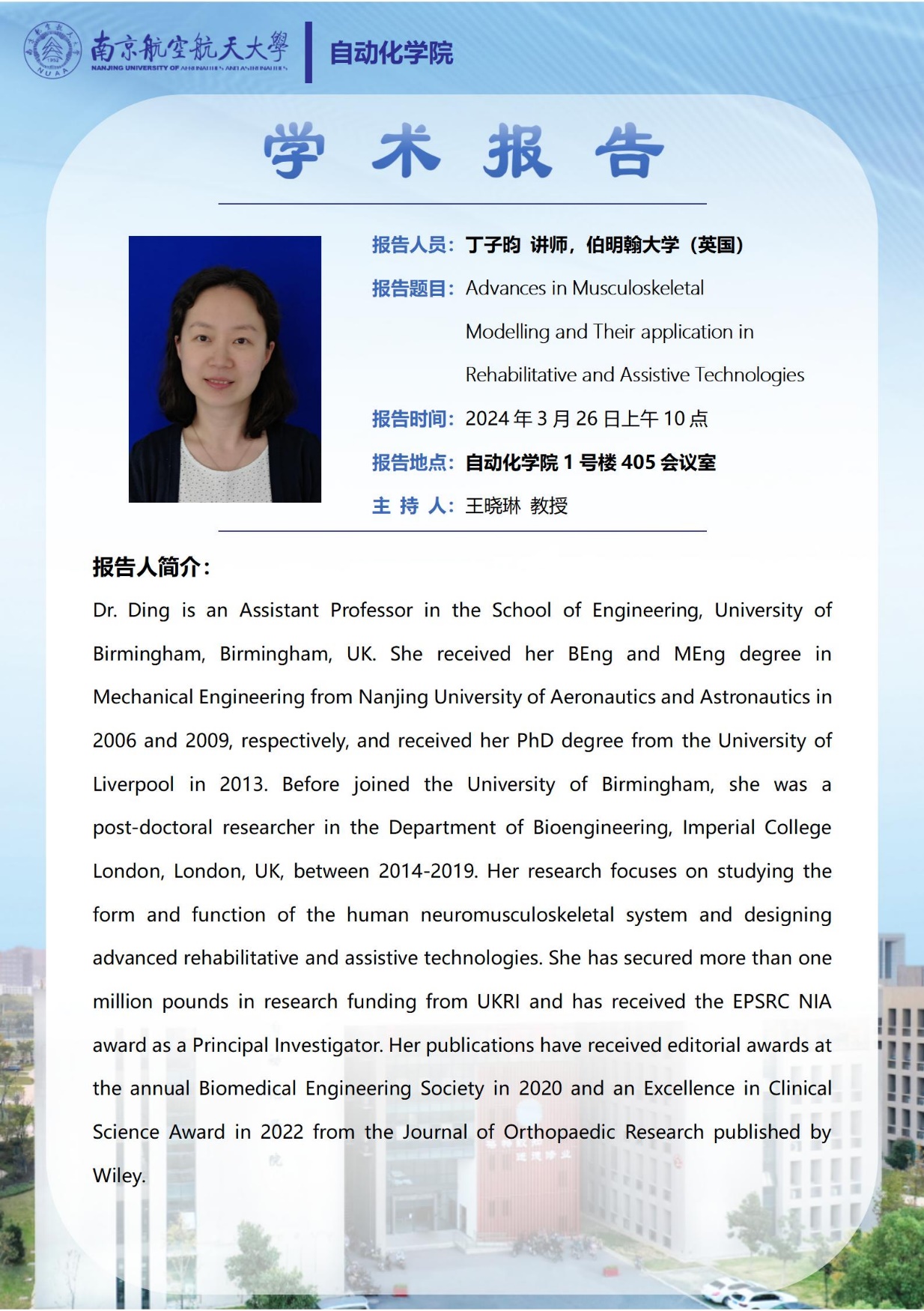 报 告 人:丁子昀讲师,伯明翰大学(英国)