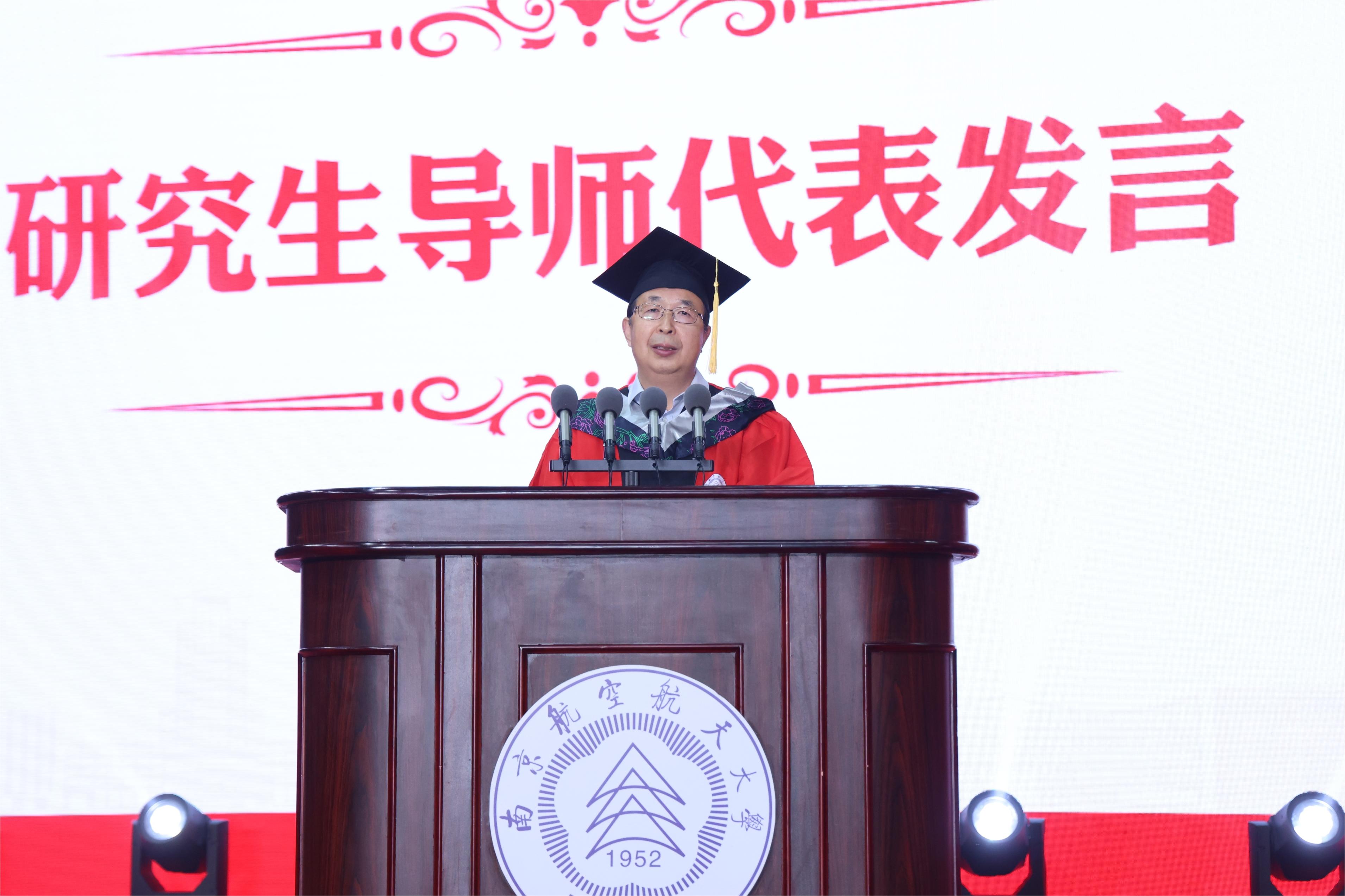 他指出,在当前世界的技术变革和当下中国的加速发展下,全体毕业生们将迎来更加广阔的舞台和千载难逢的历史际遇。他寄语全体毕业生们,要永葆忠于祖国、奉献家国的情怀,赓续传承南航的红色基因,坚持胸怀“国之大者”,时刻保持爱国的崇高情怀和朴素情感,坚定地把个人奋斗融入到强国建设、民族复兴的时代洪流;要锤炼实干担当、脚踏实地的品格,坚持以“用心做好一件事”为信念,脚踏实地、埋头实干,不驰于空想,不骛于虚声,在实干中淬炼过硬本领、磨砺坚强心志,在岗位上经风雨、见世面、壮筋骨、长才干;要弘扬敢为人先、开拓创新的精神,以“不破楼兰终不还”的坚定意志和“任尔东西南北风”的战略定力,在基础研究、重大项目、关键核心技术的创新道路上不断探索前行,产出更多科技创新成果,加快培育和发展新质生产力、有力服务支撑高水平科技自立自强,让青春在创新创造中持续焕发光彩。