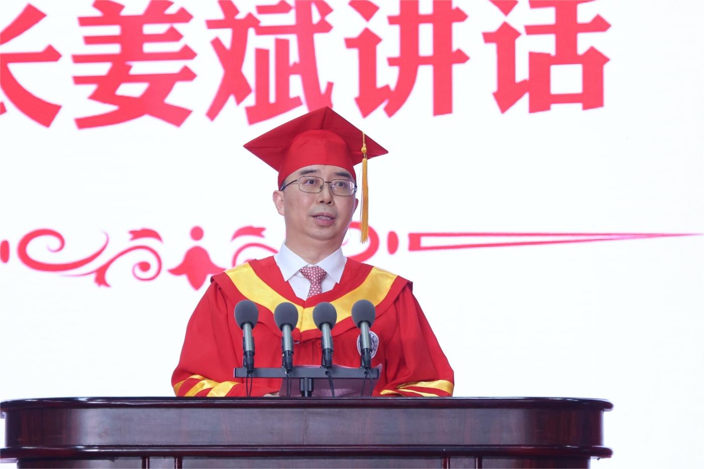 姜斌作了题为《踔厉奋发,再启新程》的讲话。他代表单忠德书记和学校全体师生向毕业生们表示热烈祝贺,向倾心指导学生学业的导师、关心支持学生成长的家长、辛勤付出的教职员工表示衷心感谢。