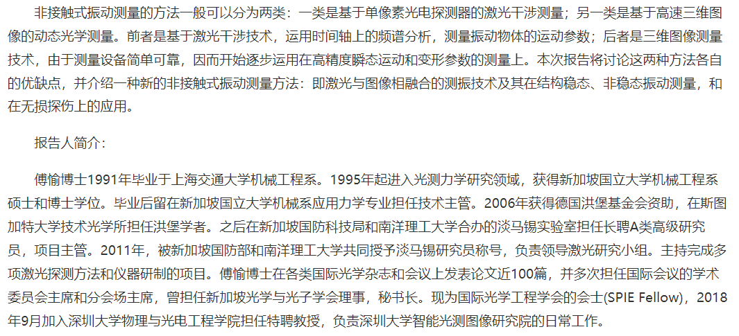 1. 报告题目:激光与图像技术相融合的振动测量方法