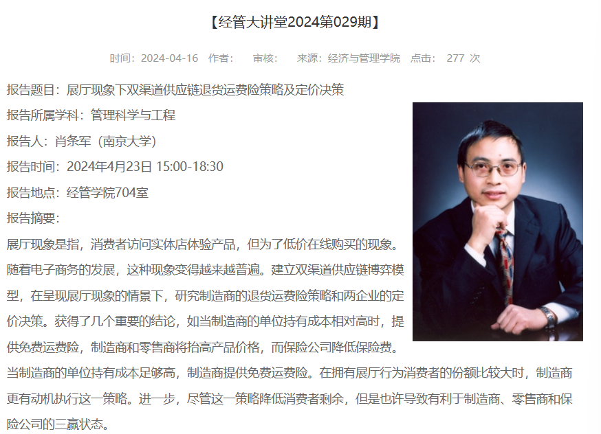 报告地点:经管学院704室