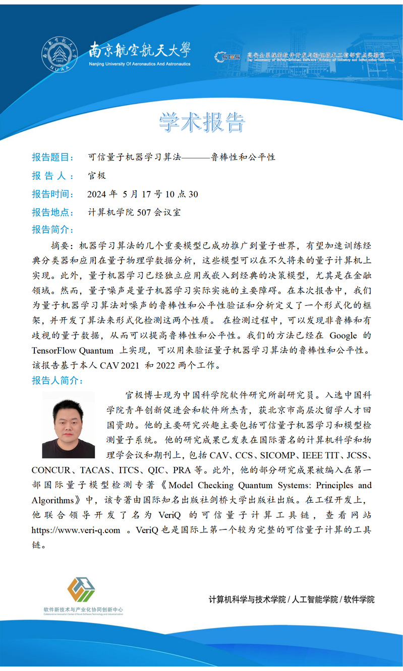 6. 报告题目 :可信量子机学习算法—鲁棒性和公平性