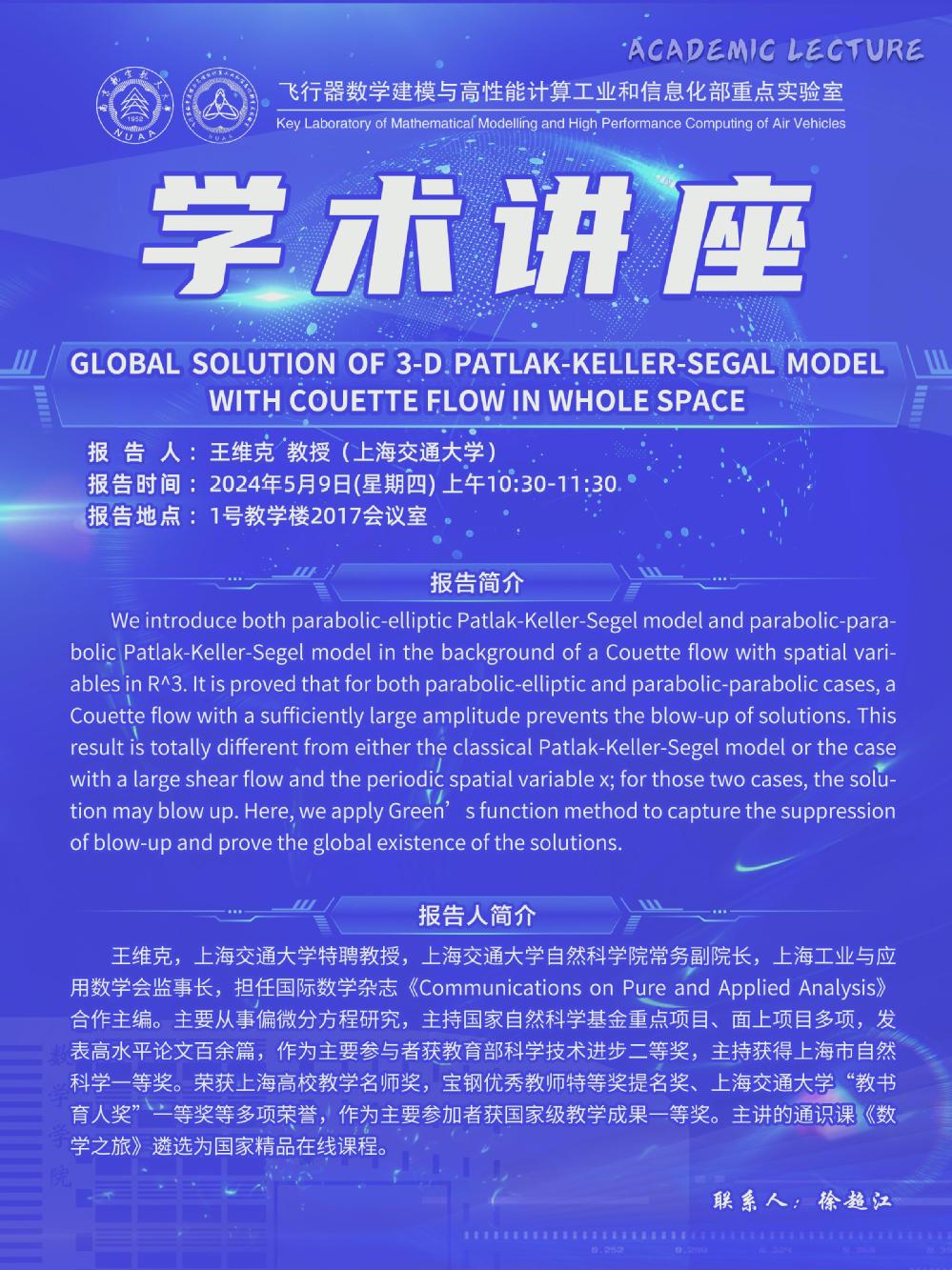 4. 报告题目 :GLOBAL SOLUTION OF 3-D.PATLAK-KELLER-SEGAL MODELWITH COUETTE FLOW IN WHOLE SPACE