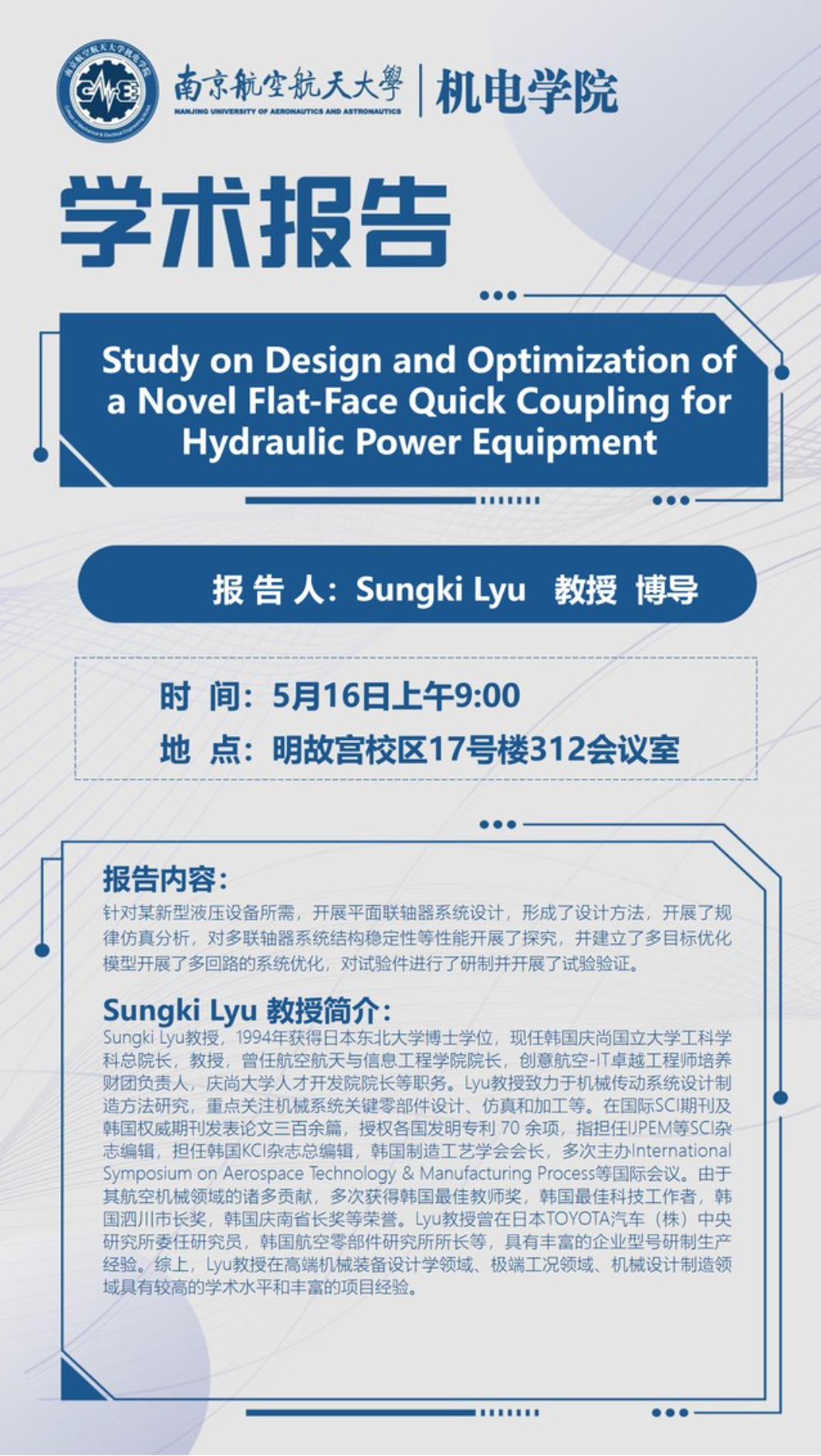 报 告 人 : Sungki Lyu教授博导