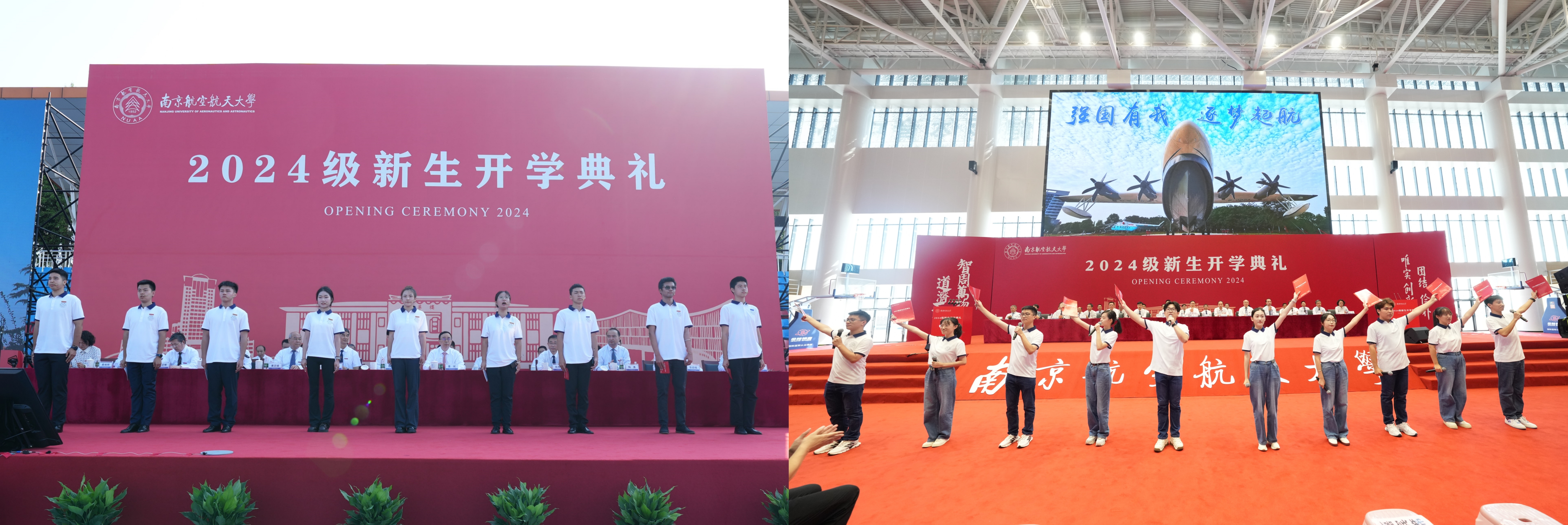 2024级新生代表分别带来音诗画《选择》和诗朗诵《强国有我 逐梦起航》,表达了他们圆梦南航的喜悦与对未来生活的期待,发出“青春选择当无悔,誓与祖国共前行”的时代强音和“初心不改、使命不怠,航空报国、矢志一流,强国有我、逐梦起航”的铿锵誓言。