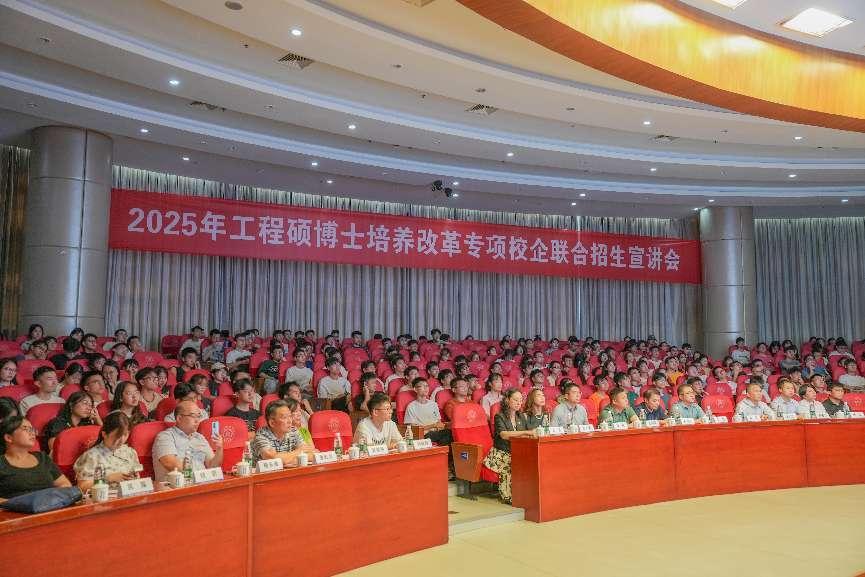 9月9日下午,国家卓越工程师学院、研究生院在将军路校区举办了2025年工程硕博士培养改革专项校企联合招生宣讲会。此次会议邀请到中国航天科工集团有限公司、中国航空工业集团有限公司、中国电子科技集团有限公司、中国航空发动机集团有限公司、中国电子信息产业集团有限公司、中国融通资产管理集团有限公司、中国商用飞机有限责任公司、太行国家实验室、深圳能源集团股份有限公司等9家行业领军单位入校宣讲,十四家企业的20余位专项负责人参加了本次宣讲会。参加会议的还有我校研究生院院长、国家卓越工程师学院常务副院长陈兵、国家卓越工程师学院副院长郭宇、学生处副处长王霄、国家卓越工程师学院院长助理朱秋明以及400余名优秀本科生代表。
