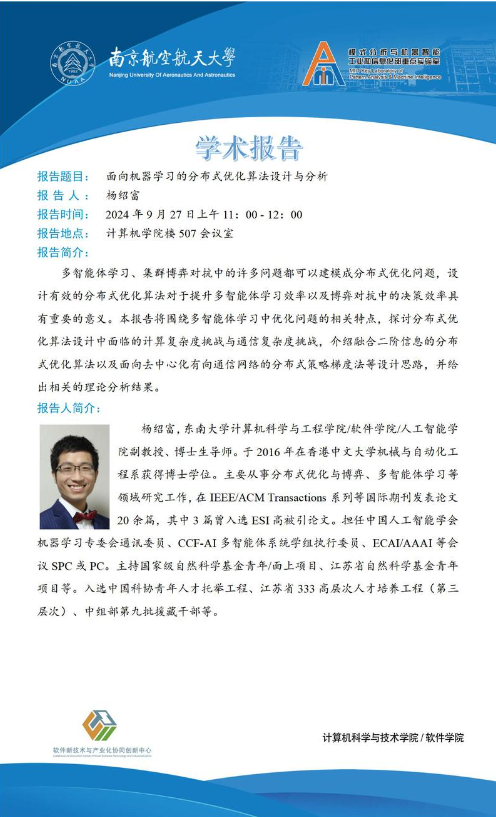 报告地点:计算机学院楼507会议室