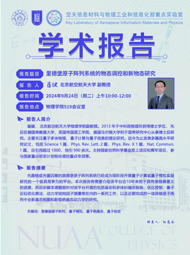 报告题目:里得堡原子阵列系统的物态调控和新物态研究