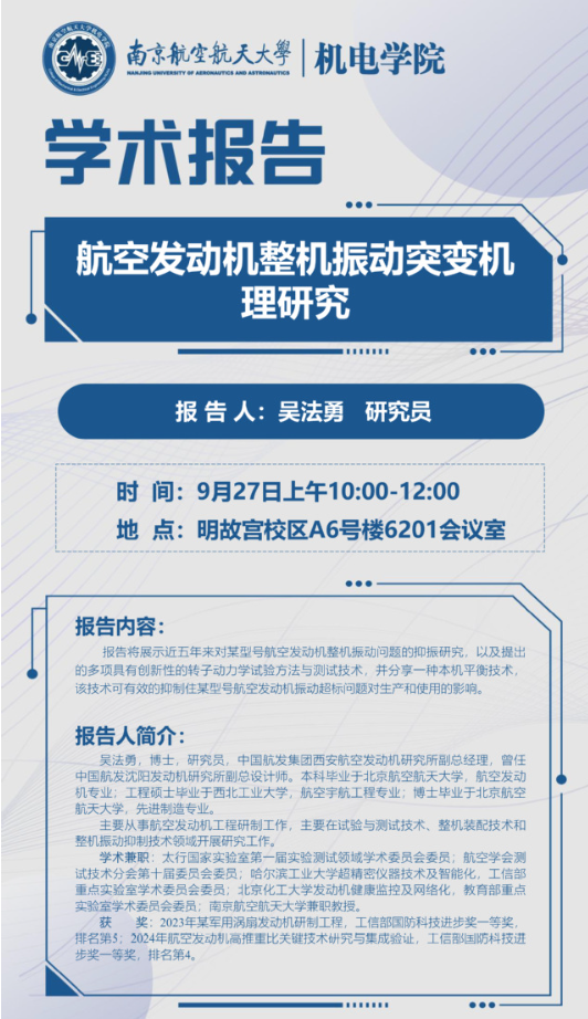 报告题目:航空发动机整机振动突变机理研究
