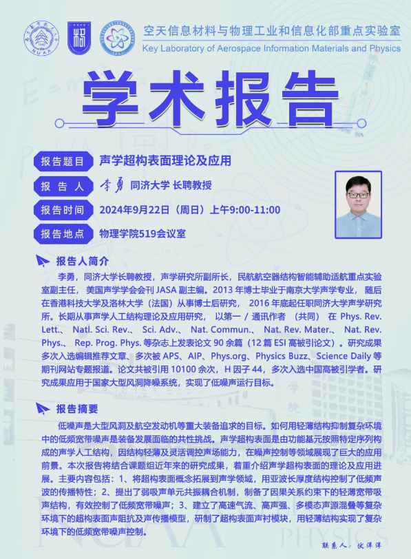 报告题目:声学超构表面理论及应用