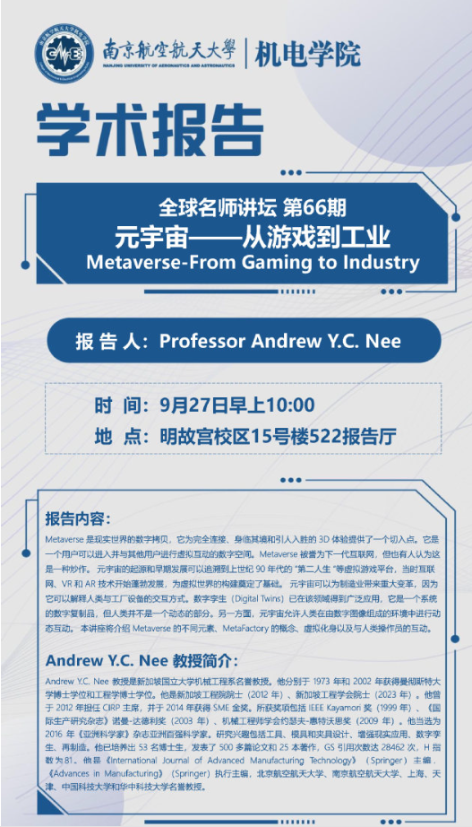 报告人:Professor Andrew Y.C. Nee