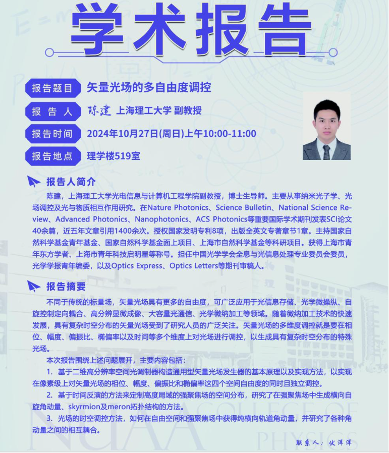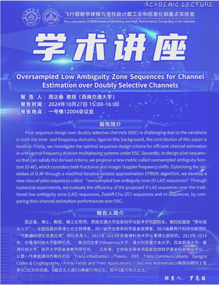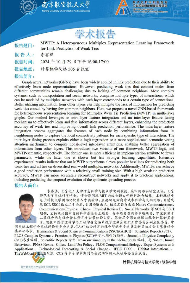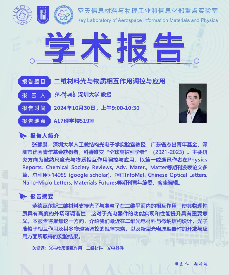 报告地点:南京航空航天大学明故宫校区(A8楼605会议室)
