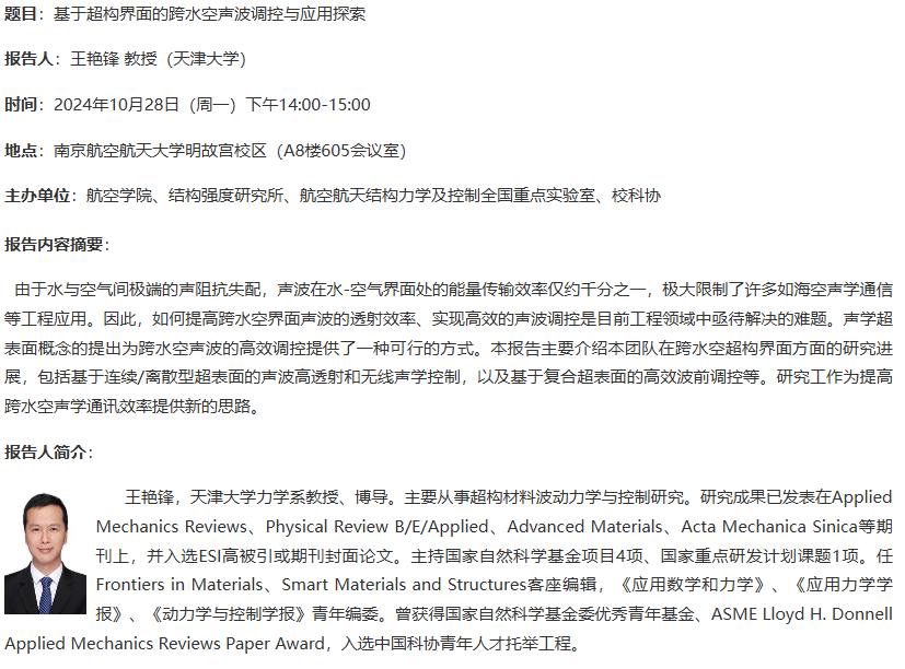 报告题目:基于超构界面的跨水空声波调控与应用探索