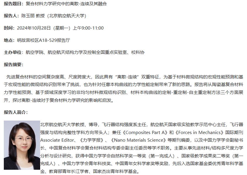报告人:陈玉丽 教授(北京航空航天大学)