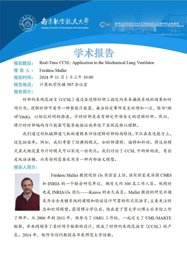 报告题目:Real-Time CCSL:Application to the Mechanical Lung Ventilator Frederic Mallet