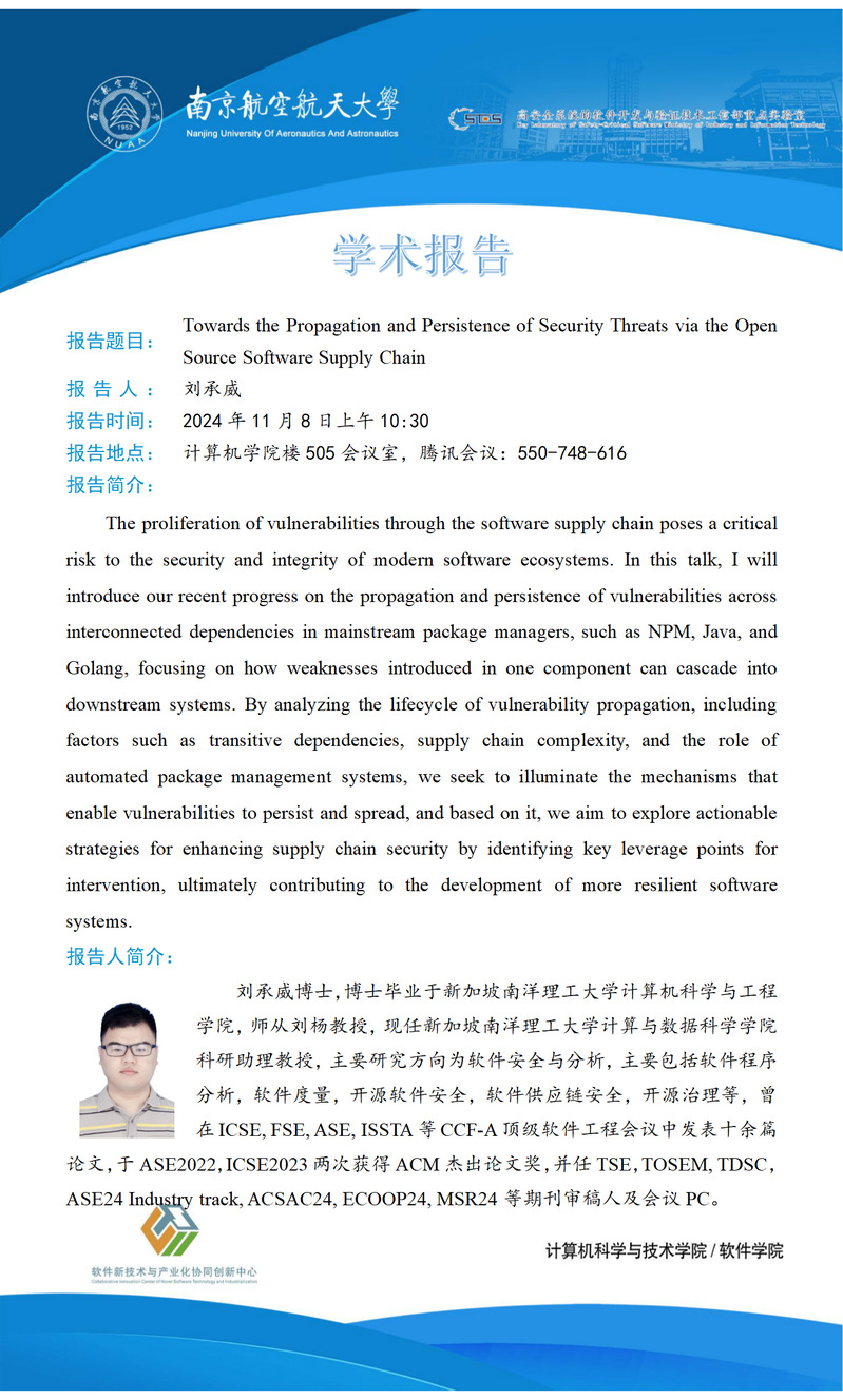 报告地点:计算机学院楼505会议室,腾讯会议:550-748-616