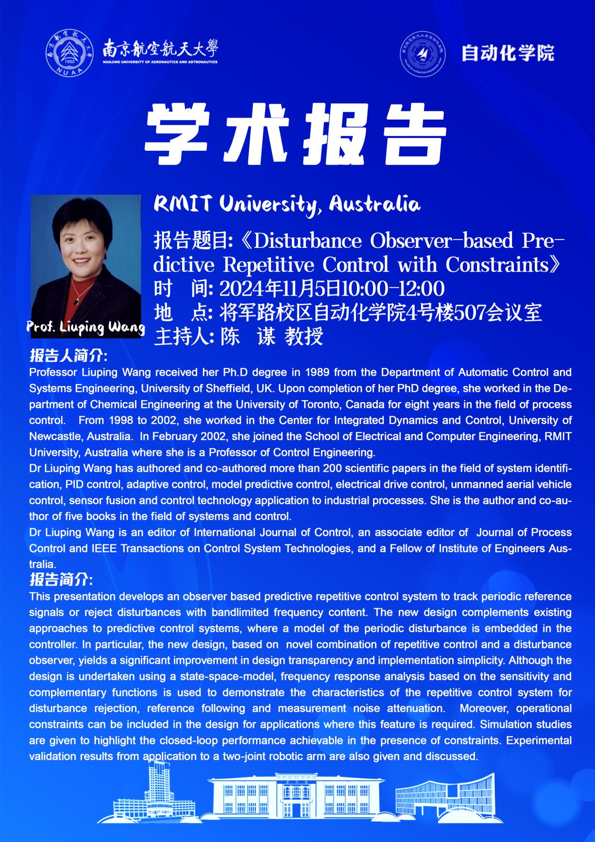 报告题目:Disturbance Observer-based Predictive Repetitive Control with Constraints