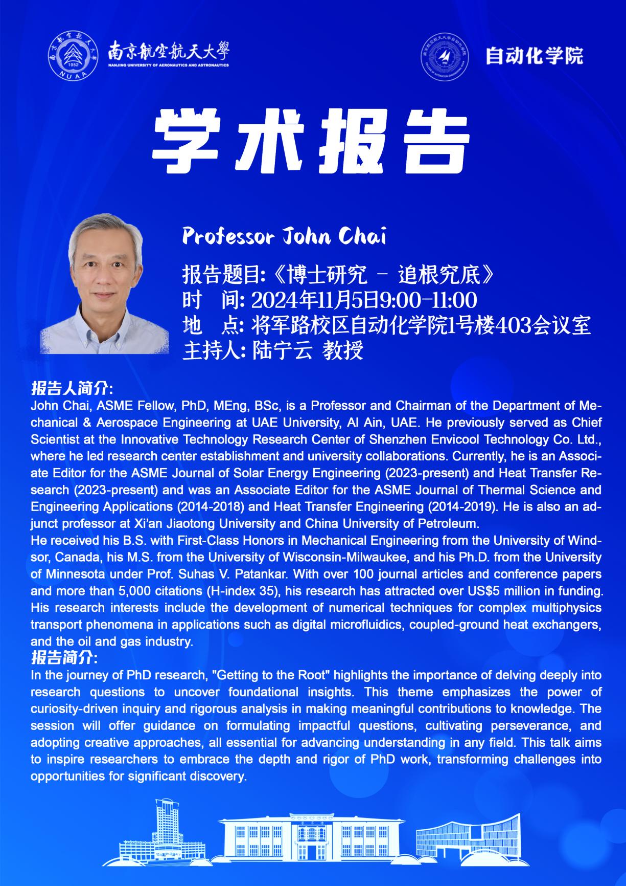 报告人:Professor John Chai
