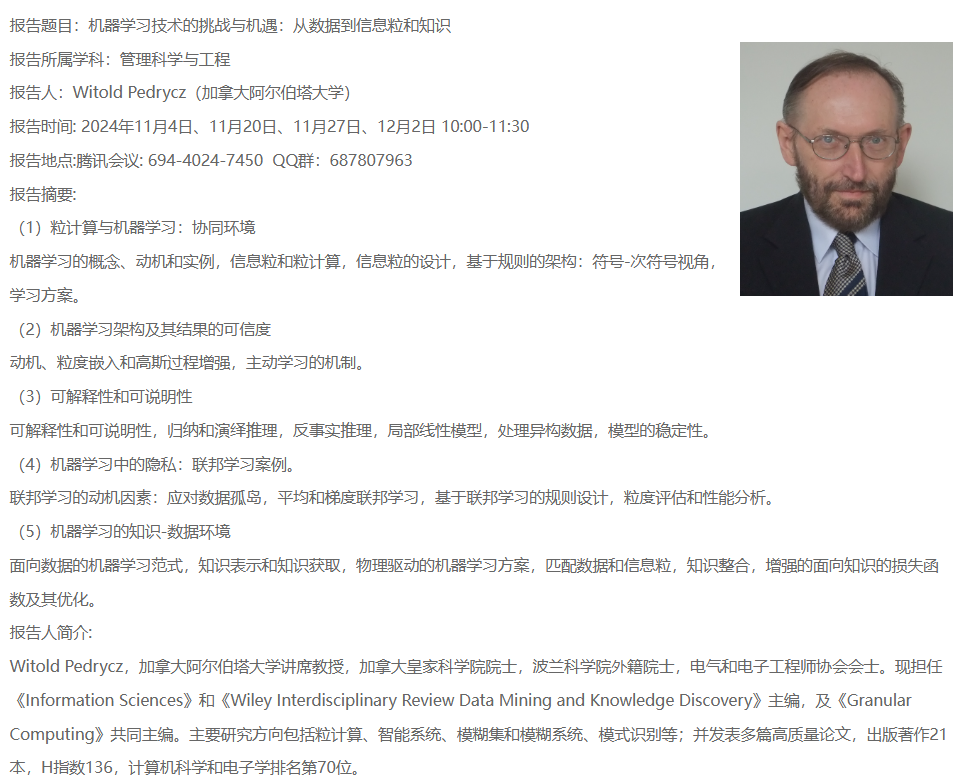报告人:Witold Pedrycz(加拿大阿尔伯塔大学)
