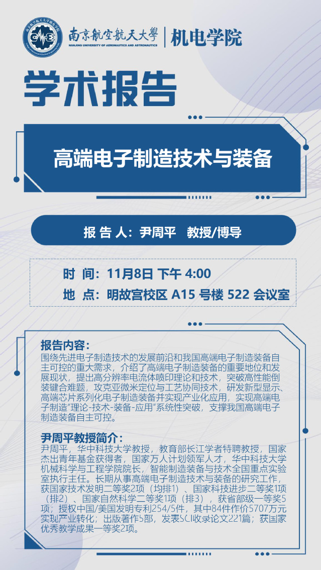 报告题目:高端电子制造技术与装备