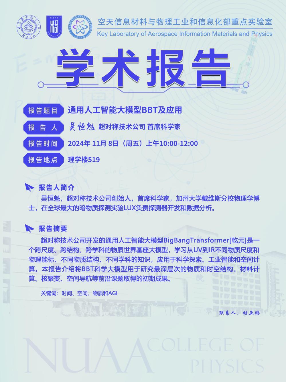 报告地点:物理学院519会议室