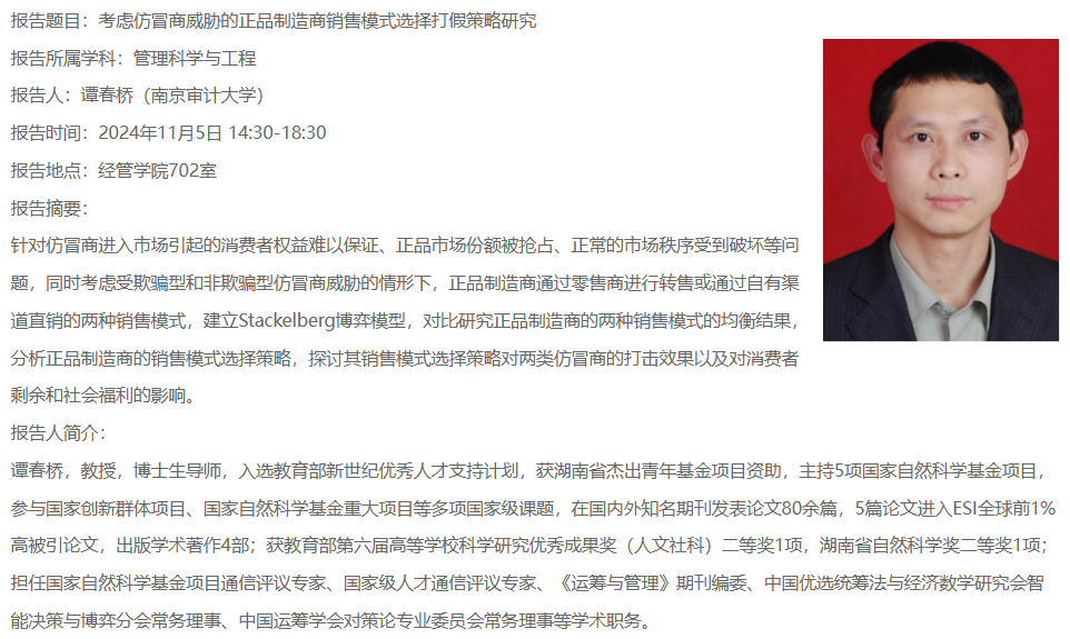 报告地点:经管学院702室
