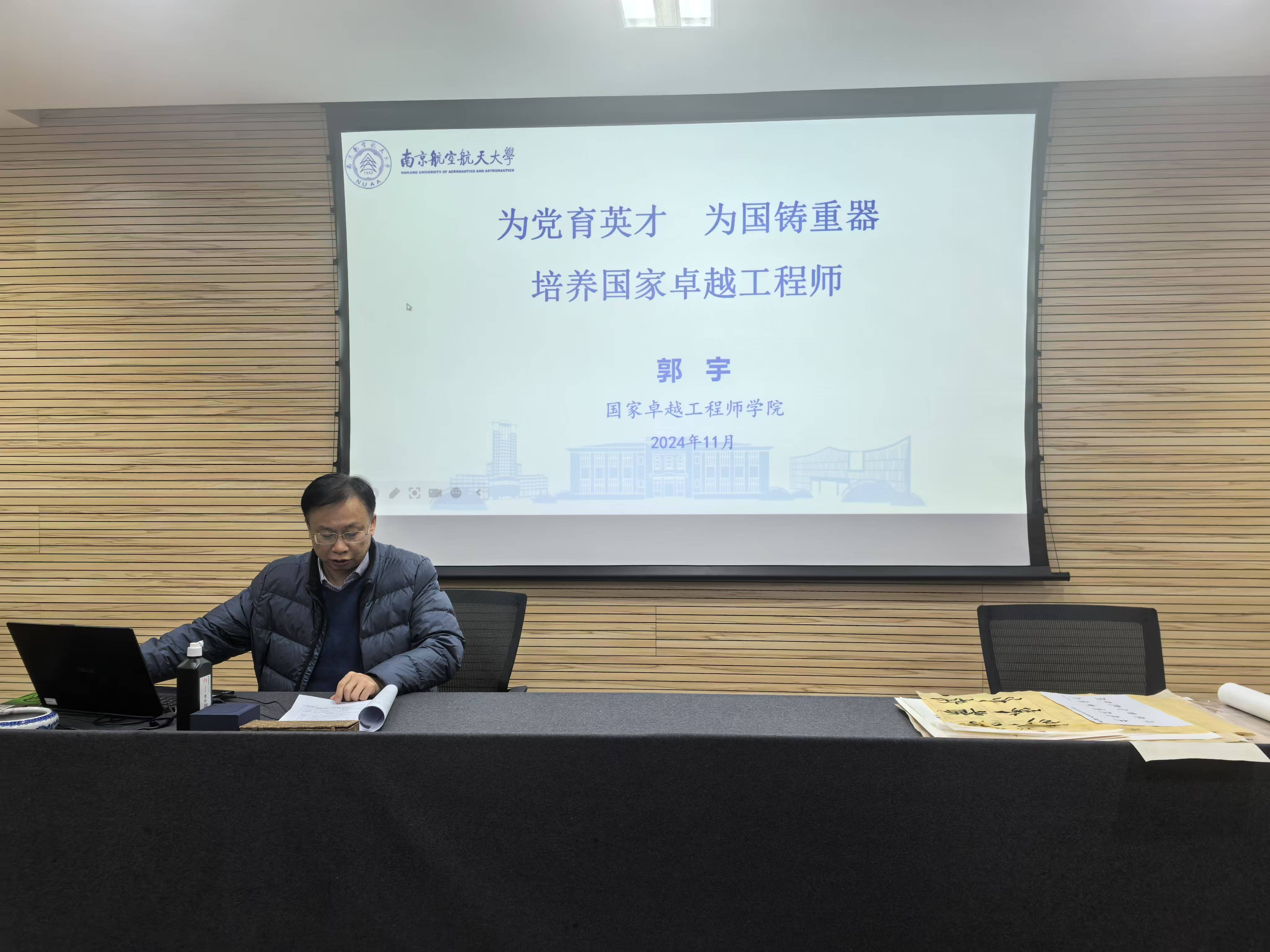 支部党员、国家卓越工程师学院副院长郭宇面向共建支部作《为党育英才、为国铸重器,培养国家卓越工程师》专题党课。他结合习近平总书记在2021年中央人才工作会议上的讲话精神,党的二十大精神,全方位介绍了国内外工程人才培养历史背景及南航卓越工程师学院的建设举措与成效,深入剖析当前我国卓越工程师培养进程中所面临的机遇与挑战,并就下一步工作思路展开探讨。