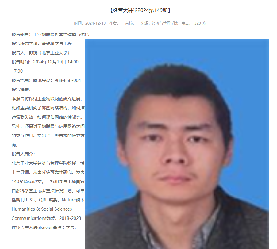报告人:彭锐(北京工业大学)
