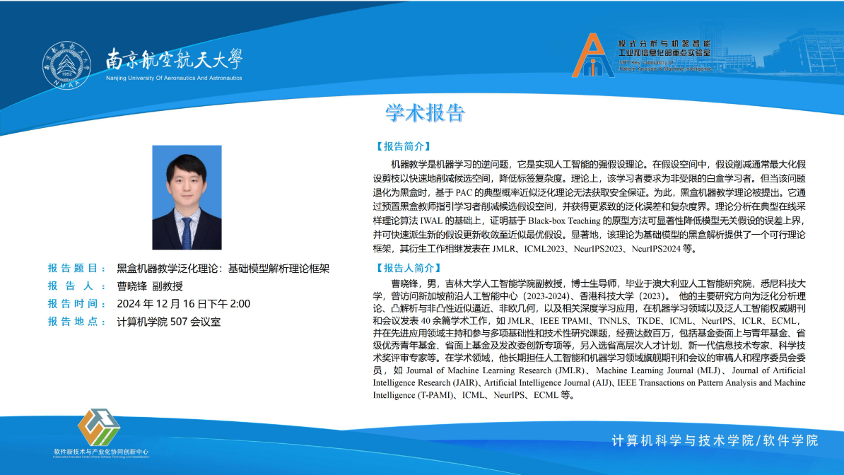 报告题目:黑盒机器教学泛化理论:基础模型解析理论框架