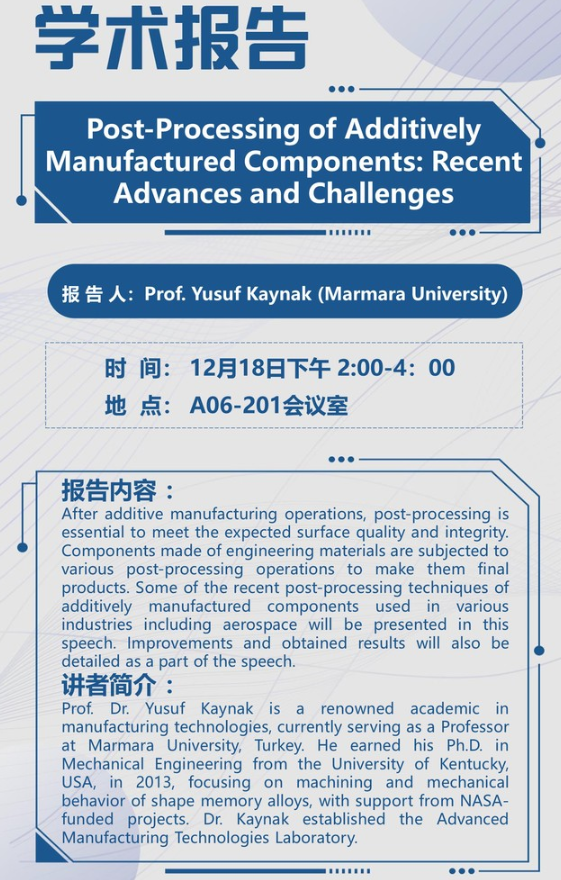 报告题目:Post-Processing of Additively Manufactured Components:Recent Advances and Challenges