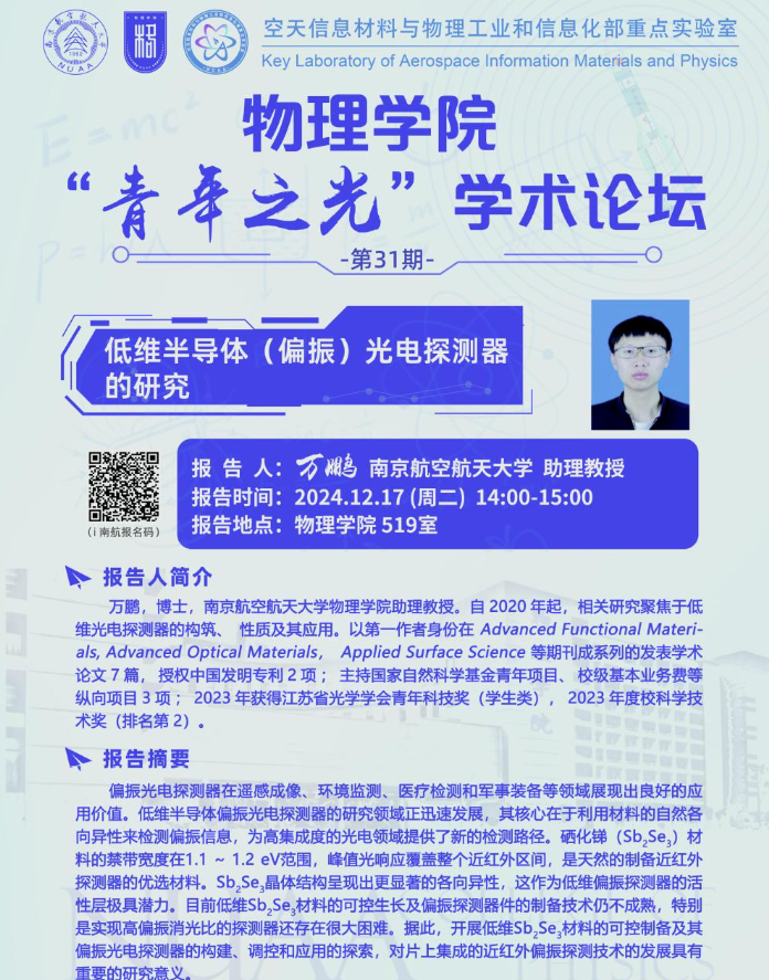 报告题目:低维半导体(偏振)光电探测器的研究