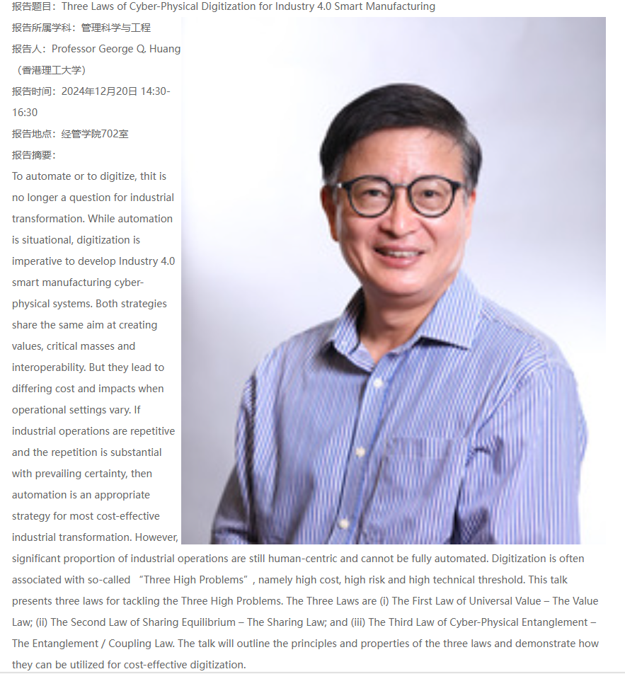 报告人:Professor George Q.Huang(香港理工大学)