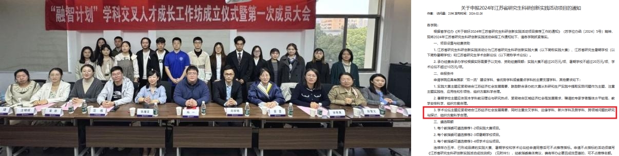 研究生院/党委研究生工作部通过组建“融智计划”学科交叉人才成长工作坊、增设研究生科研与实践创新计划项目学科交叉专项课题等方式,鼓励研究生开展跨学科团队交流,进一步提高研究生科研与实践创新的能力水平。