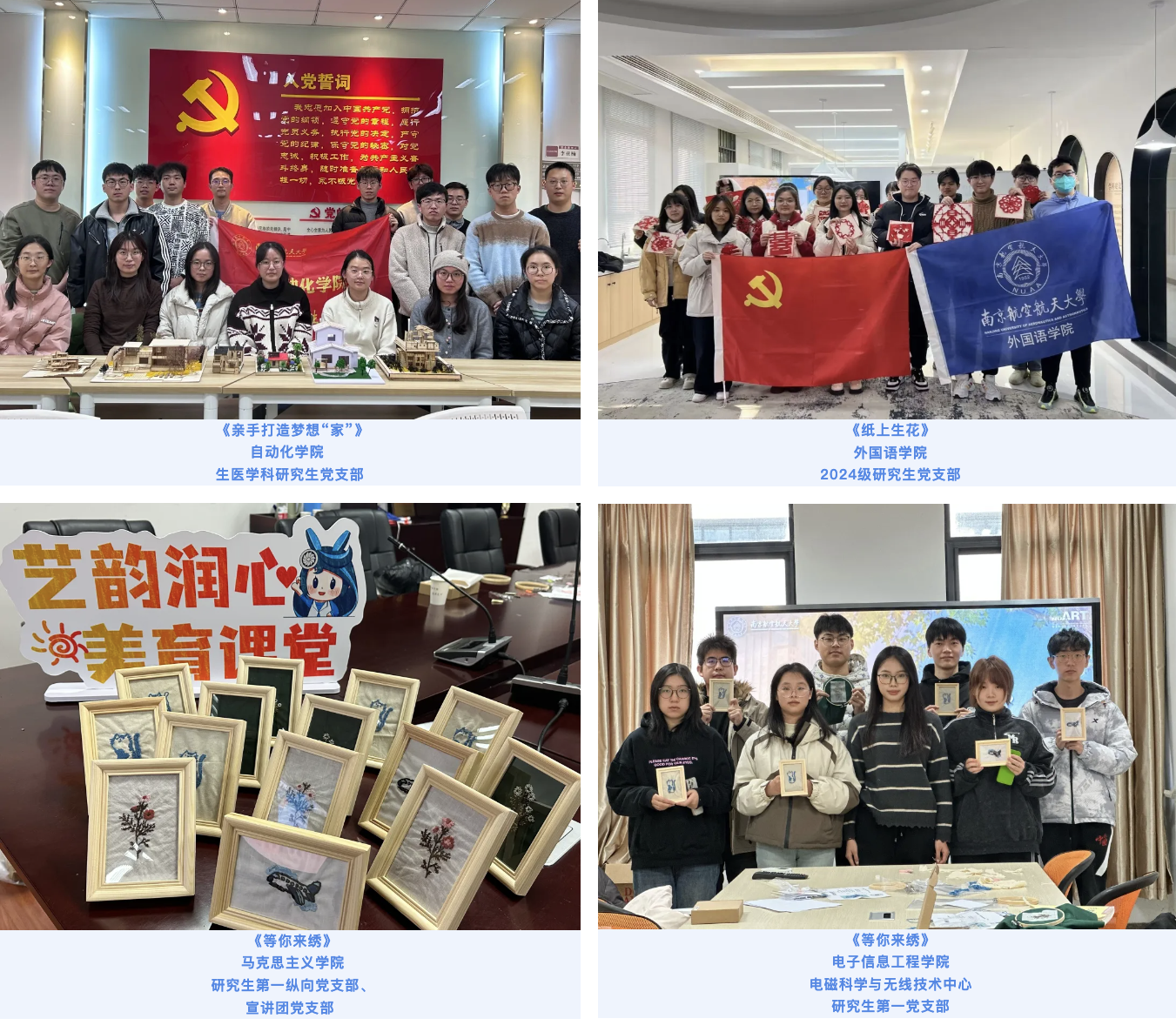 开设剪纸、绒花、刺绣、茶艺、建筑模型等体验课程,感受指尖上的艺术,体会历史的沉淀和文化的传承,探寻匠心独运的魅力。研究生们在实践中深刻感悟非遗的文化意义与美学魅力,通过艺术与科学的跨学科融合,激发学生的文化自信与创新思维。