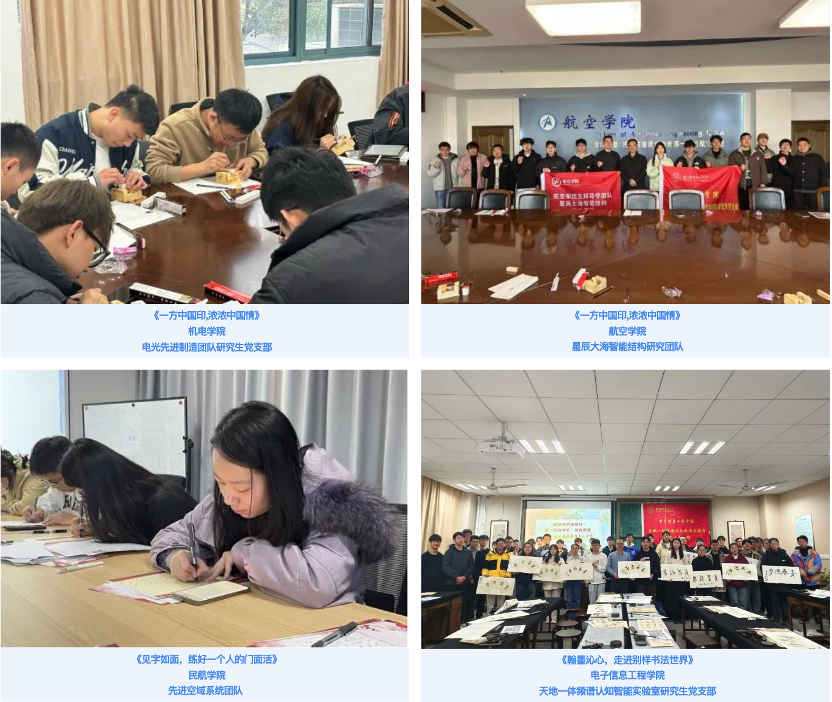组织开设书法学习、印章篆刻等体验课程,从点画到造型、从形式到内容、从笔法到墨法、从情感到神采,让研究生充分领悟汉字和书法的魅力,在一笔一划中,深切感悟中华传统文化独有的神韵美感和艺术价值,提升艺术修养,凝聚民族精神、坚定文化自信。