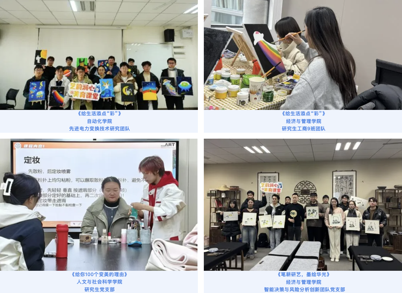 为全面贯彻落实党的教育方针,弘扬中华美育精神,我校依托“艺韵润心”美育课堂平台组织开展研究生“精神文明建设月”专项工作。各学院研究生导学团队、研究生党支部、研究生工作室积极参与美育学习和体验活动,切实提升我校研究生的艺术修养与审美情操,打造昂扬向上、文明高雅、充满活力的校园文化氛围。