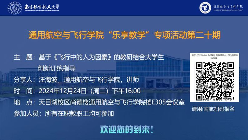 报告题目:基于《飞行中的人为因素》的教研结合大学生创新训练指导