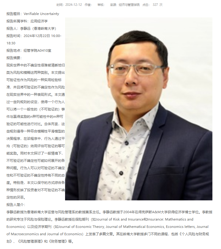 报告人:李静远(香港岭南大学)